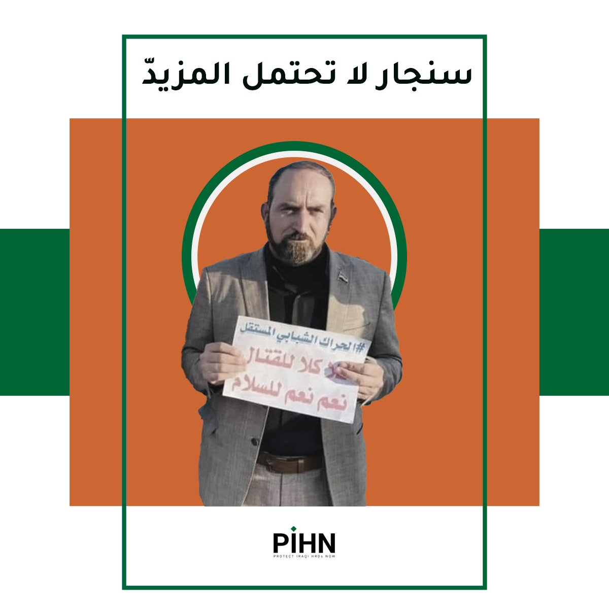 باعتبارنا مدافعين عن حقوق الإنسان نعزي عائلة الشيخ جميل وعائلته وأصدقائه ومحبيه، ونعرب عن تضامننا الكامل مع النشطاء المدنيين وجميع المدافعين عن حق الإنسان في عموم البلاد عامةً وقضاء سنجار على وجه التحديد، وفي الوقت ذاته نجدد دعوتنا للحكومة العراقية إلى الالتفات إلى واجبها الدستوري والقانوني والإنساني وعلى رأسها تأمين المواطنين العراقيين على مختلف تلاوينهم وأديانهم وقومياتهم، وحماية المتظاهرين والناشطين السلميين. ونشدد على ضرورة أن تكون حاضرة اليوم وبقوة لوضع الحلول التي تضمن إخراج هذه المنطقة من حالة الأجواء المشحونة التي تعيشها وفرض سيطرتها الكاملة على المنطقة وتضمن أن لا تتحول النزاعات السياسية إلى صراعاً عسكرياً يدفع ثمنه الأبرياء من العزّل في سنجار.